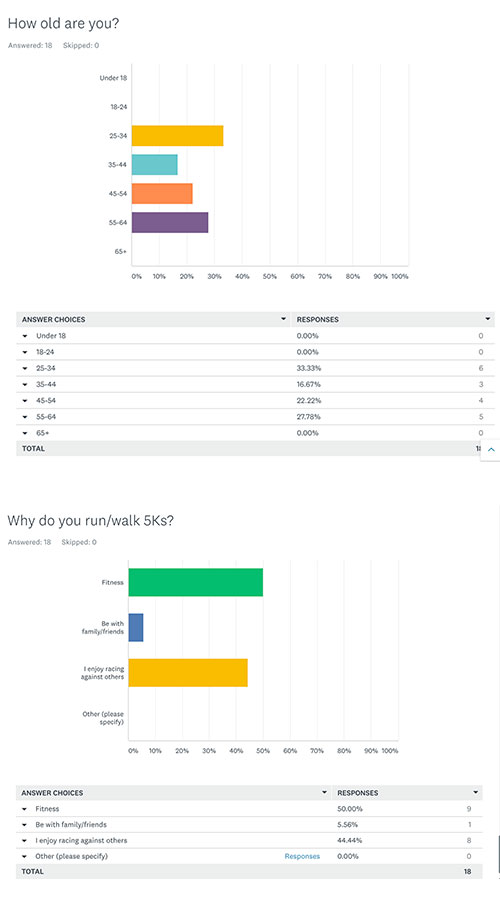 I was also able to find out after asking users what race websites they liked to use, that end users like sites that make it easy to find their race results. Other mentions included organization (easily able to find race location and time), colors and photography.